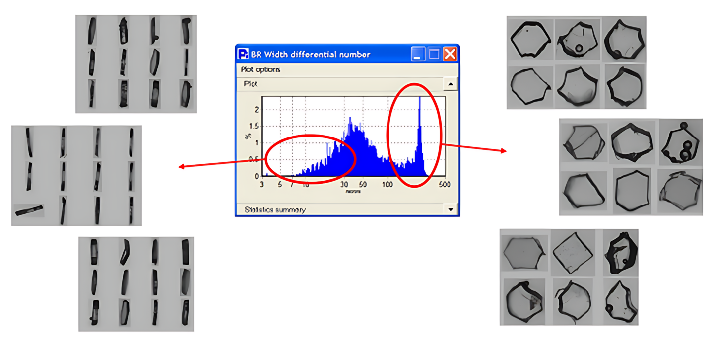 動的画像解析の非常に重要な特長の一つは、統計的に疑わしい粒子を実際の画像として確認できる点にあります。