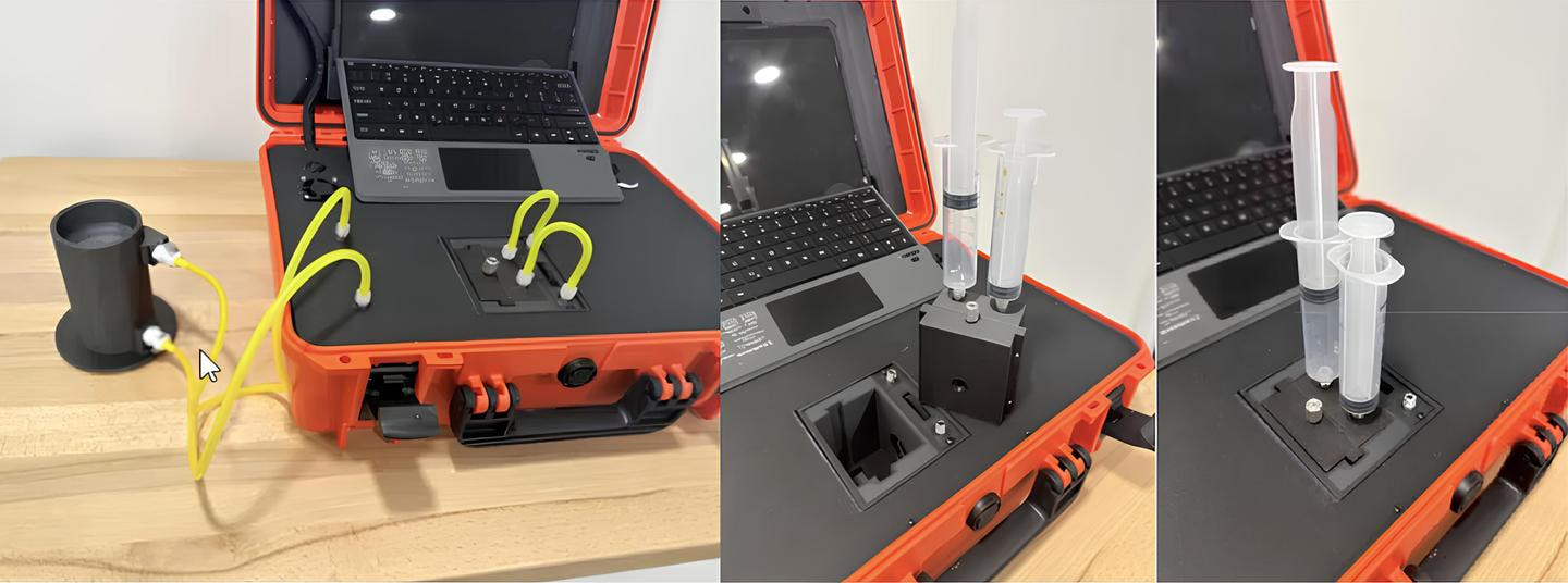 サンプル量が極めて少ない場合(最低1mL〜)や汚染が懸念される場合、2本のシリンジを使用することで、内蔵ポンプを使用せずサンプルを手動で循環させながらサンプル分析を行うことができます。これにより、滅菌済みで汚染のないシリンジで分析でき、分析後のサンプルも保存することができます。