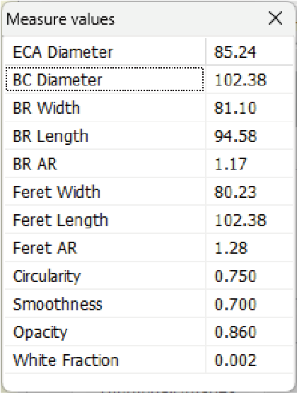 | BR AR, Feret AR, Circularity |